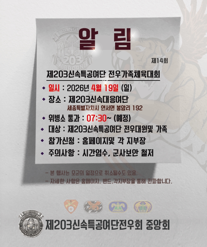 [알림] 2026년도 제14회 제203신속특공여단 전우가족체육대회