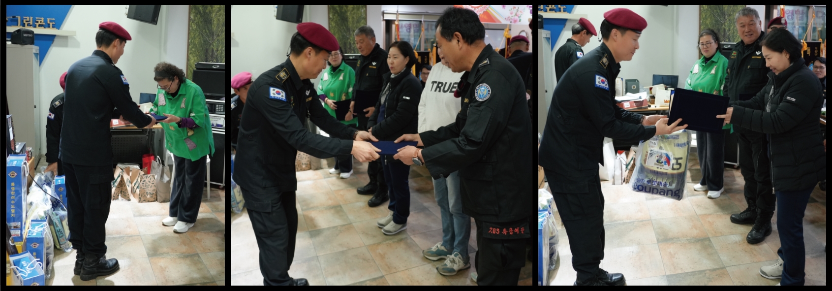 경상지부장ㅣ김성준님의 댓글 경상지부장ㅣ김성준 쪽지보내기 메일보내기 자기소개 아이디로 검색 전체게시물 쪽지보내기 메일보내기 자기소개 아이디로 검색 전체게시물 작성일 12.10 09:33 제203신속대응여단장 감사장 수여 수여하신 대원 : 윤종수 , 송주영, 김만석, 이우식, 임동빈, 장대희 (존칭 생략) [https://www.rok203rb.com/data/editor/2512/cmt_1982694938_X6vBUzHc_b457c699b41175cf5c9287b6243007dbc6eba463.jpg] 제203신속대응여단장 감사장 수여 수여하신 대원 : 윤종수 , 송주영, 김만석, 이우식, 임동빈, 장대희 (존칭 생략)