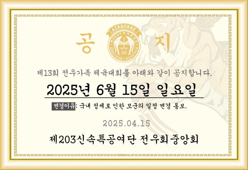 제203신속특공여단 전우가족 체육대회 ㅣ2025년 6월 15일(클릭)